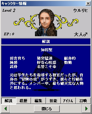 ウルリヒ: やあ、皆さんはじめまして。 冒険者の宿「捨て仔犬亭」のウルリヒと申します。 カルバチアの学校で教鞭をとっていたのですが、 最近、教え子たちと冒険者としてデビューいたしました。 いやあ、けっこう憧れていたんですよ、冒険者って。 見知らぬ土地に赴き、未踏の遺跡を探検し、不思議な生き物に出会う。 研究室に篭っていては体験できない、本当の意味での学問ってやつですかね。 ハイディ君が、冒険者チームを結成すると聞いたときは、衝撃が走りましたよ。 今こそ、真の学問の道に身を投じるべきだと。 すぐさま辞表を提出して仲間に入れてもらった次第なのです。 ま、女房はカンカンに怒ってましたがね、ハハハ。 さて、そんな我々の冒険の様子を報告していこうと思います。 暇つぶしにご覧いただければ幸いでございます。 PR |
