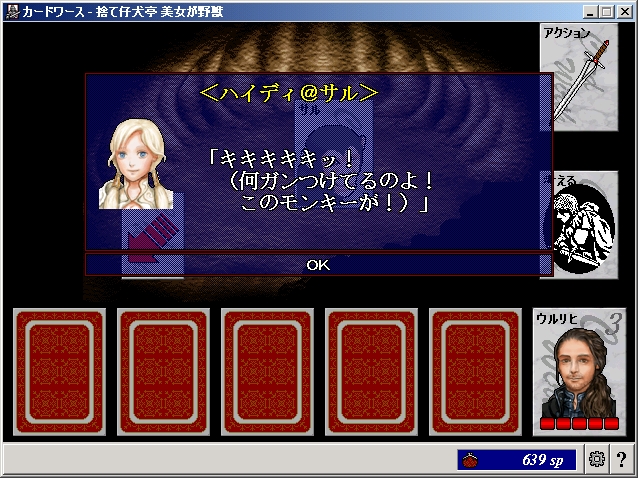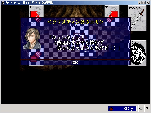 ウルリヒ: やあ、皆さんはじめまして。 冒険者の宿「捨て仔犬亭」のウルリヒと申します。 カルバチアの学校で教鞭をとっていたのですが、 最近、教え子たちと冒険者としてデビューいたしました。 いやあ、けっこう憧れていたんですよ、冒険者って。 見知らぬ土地に赴き、未踏の遺跡を探検し、不思議な生き物に出会う。 研究室に篭っていては体験できない、本当の意味での学問ってやつですかね。 ハイディ君が、冒険者チームを結成すると聞いたときは、衝撃が走りましたよ。 今こそ、真の学問の道に身を投じるべきだと。 すぐさま辞表を提出して仲間に入れてもらった次第なのです。 ま、女房はカンカンに怒ってましたがね、ハハハ。 さて、そんな我々の冒険の様子を報告していこうと思います。 暇つぶしにご覧いただければ幸いでございます。 ウルリヒ: 鍋をかき混ぜる仕事をしたり、ゴブリンを懲らしめたりして軽く経験を積んだ後、 山賊の討伐のため、彼らのアジトである洞窟へ向かいました。 初めての人間相手の戦闘ということで、多少不安はありましたが、 山賊のほうが思いのほか弱くて楽勝でしたね。 しかし、問題は山賊の首領一家を追い詰めた後。 あれは変化魔法の力を封じ込めたマジックアイテムだったのでしょうか。 山賊首領の使った不思議な像の魔力で、我々は動物に変えられてしまったのです。 同じ場所にあった泉の水で元の姿に戻れたということは、像と泉とは1セットのものと考えるのが普通であり、この洞窟そのものが古代遺跡と呼べる代物であると言えるのか。だとしたら、誰が何の目的でこの遺跡を作ったのか。 色々と興味が尽きないところでありますが、 像は壊れてしまったし、他に手がかりとなるものも見当たりません。 なにより、動物に姿を変えた教え子たちを捕獲して元に戻さなければなりません。 最初に捕まえたのは、タヌキに変化したクリスティン君でした。 どこで覚えたのか、オトコらしいセリフを吐いていますが、 学生時代からヘタレな彼だったので、余裕で捕まえることができました。 ま、彼の場合は食うよりも食われるタイプだと思うのですが、どうでしょう? 次に捕まえたのは、チーターに変化したテア君。 おとなしい雰囲気だった彼女が、肉食獣に変化したのは意外でしたし、 その身体能力も侮れないものでした。 私とクリスティン君ではなかなか捕まえられず、彼女をおびき寄せるための干し肉も使い切ってしまい、大変でしたねえ。 3人揃えば、あとは力技で何とかなると思いました。 ペガサスに変化したユストゥス君、オオカミに変化したツェーザル君を捕らえたまでは良かったのですが、残る一人、サルに変化したハイディ君が見当たりません。 最初に遭遇していたのですが、それ以降全く姿を現しません。 おびき寄せる罠にも反応せず、ひたすら十字路で待ち伏せする羽目になりました。 その警戒心の強さやずる賢さは、冒険者として十分な素質がありそうですねえ。 おおっと、つい教官時代のクセで生徒の評価をしてるような報告になってしまいましたな。 ともかく依頼は達成し、全員無事に帰還。 後で、みんなで一杯やるとしますかな。 Copyright:GroupASK,Dr.タカミネ,あり,りら,らたら,九条のん PR |